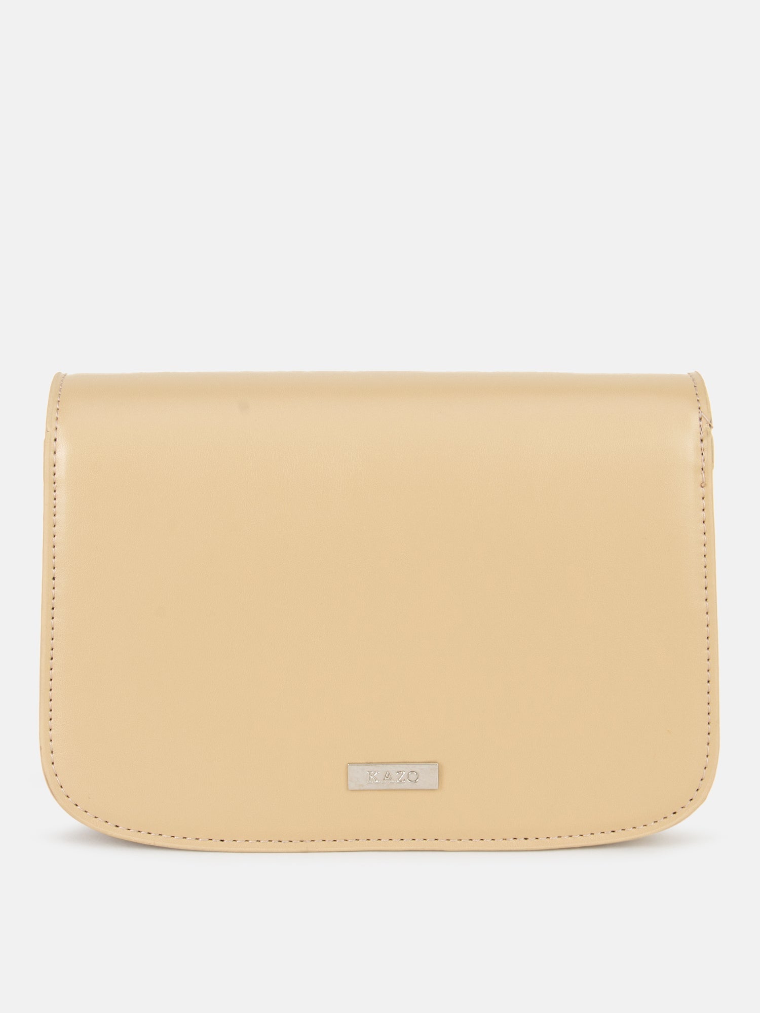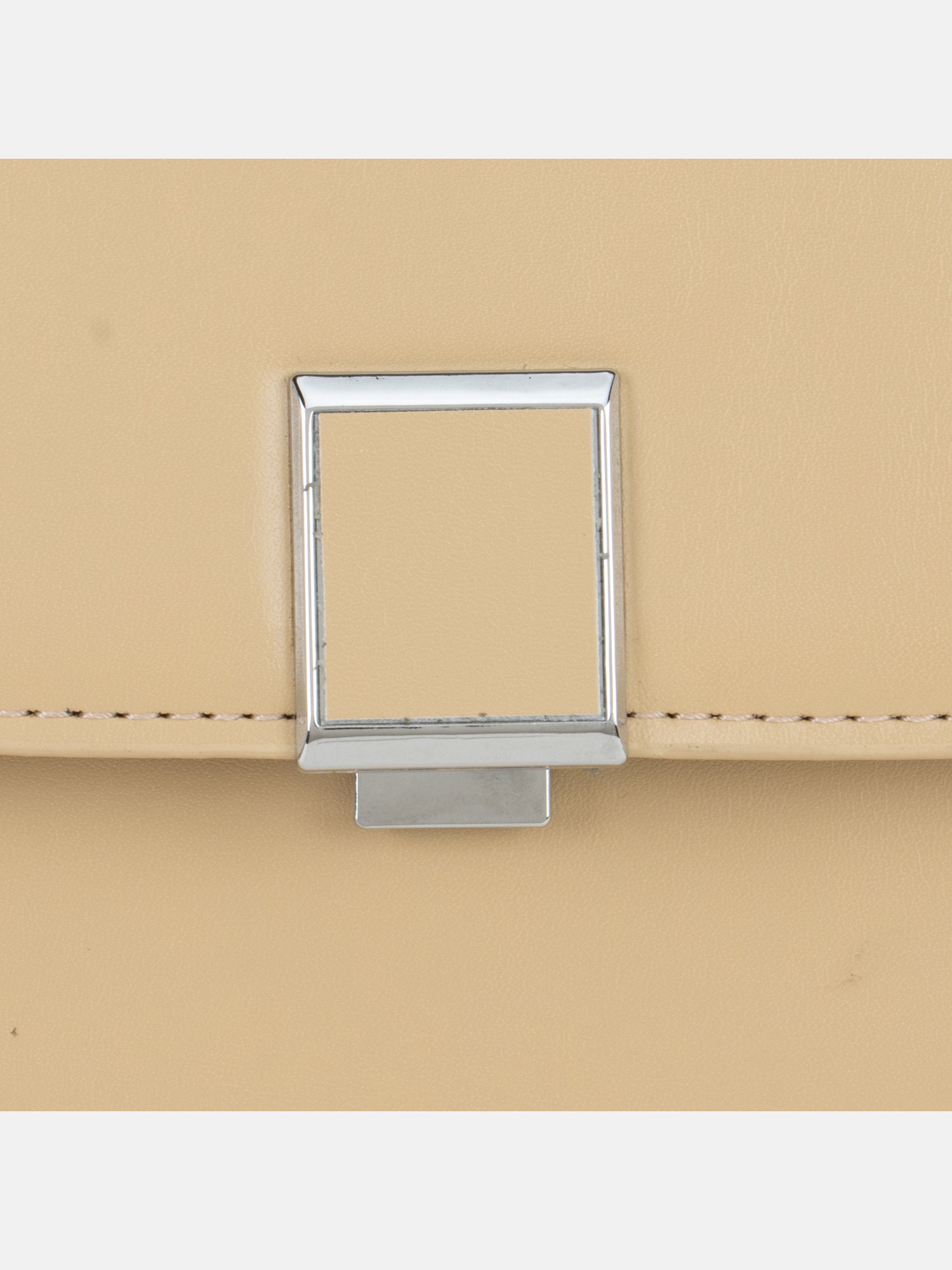 Elegant sling with rectangle buckle detail. Heavy chain Handle with detachable and adjustable strap. Front flap with magnetic clasp closure.