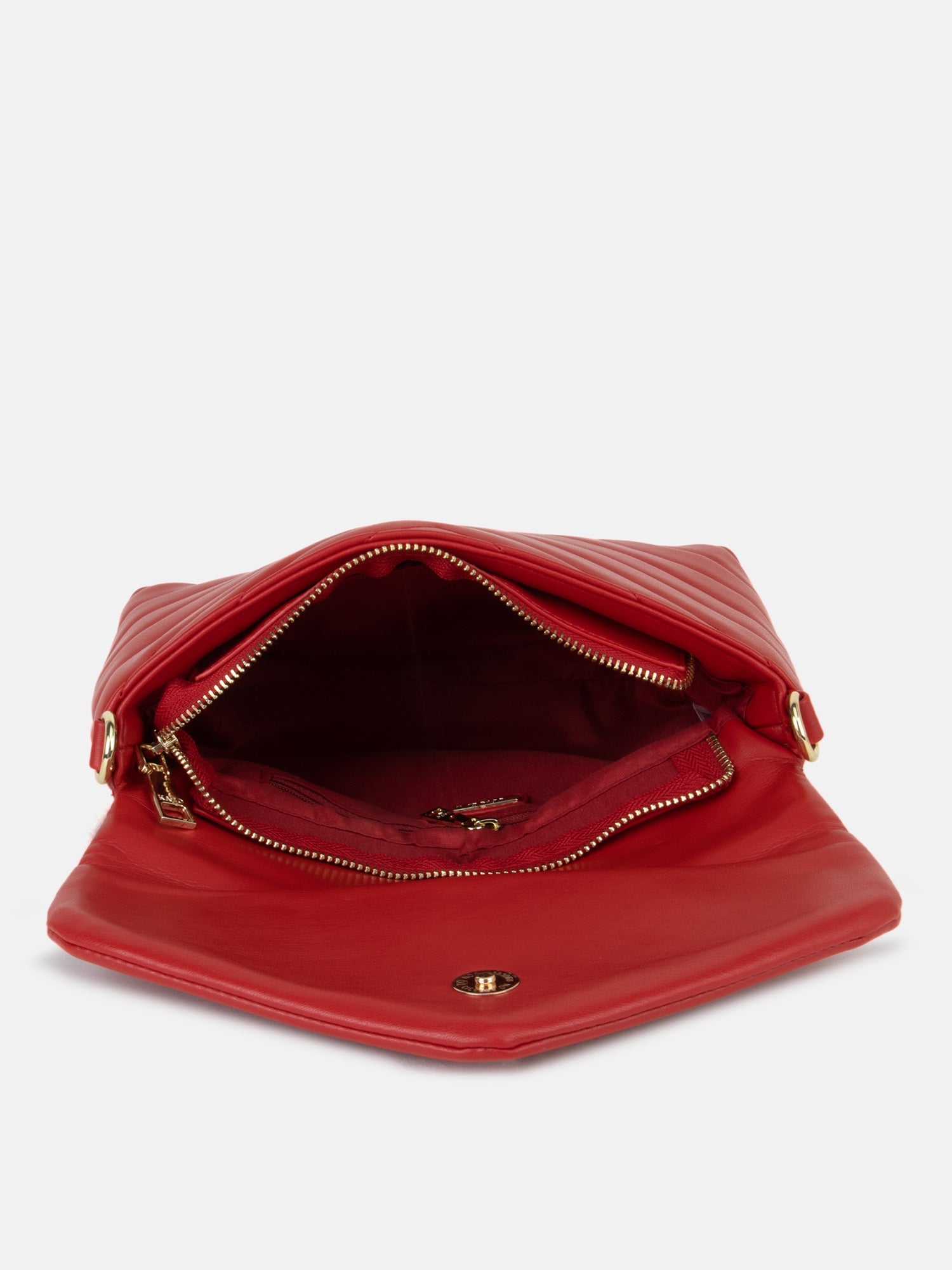 This unique quilting handbag has beauty with grace of bold Chain handle, lock closure. Lined interior with pocket.