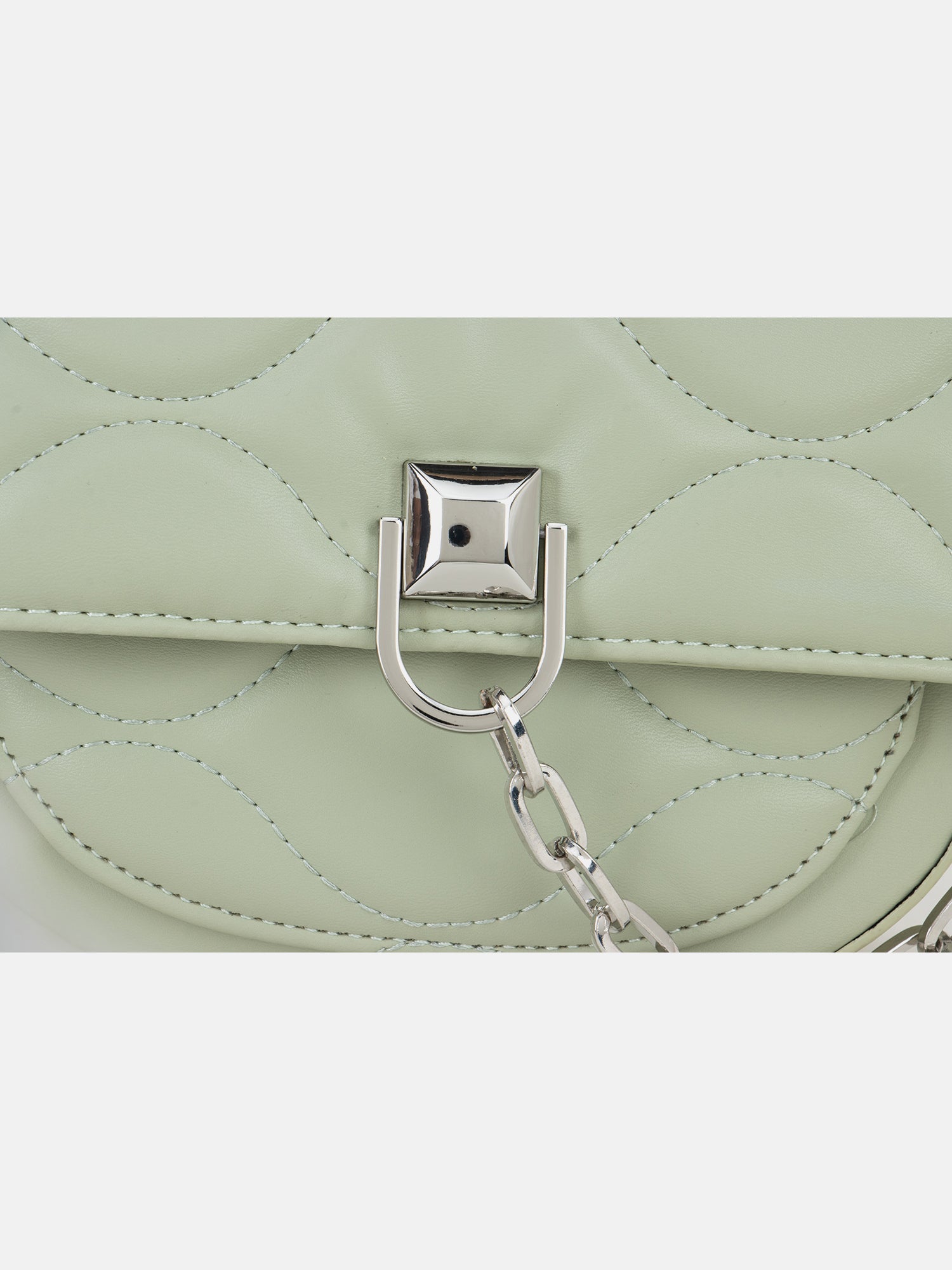 High fashion quilting sling. With beautiful designed lock, big bold quilting to give it casual look. Chain shoulder details. Lined interior with pocket.