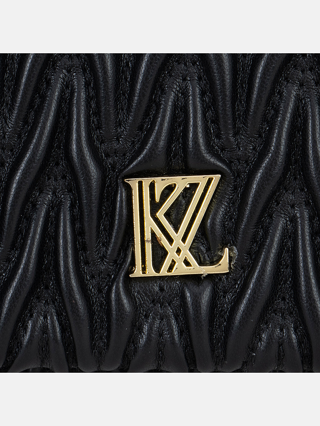 Small city quilting bag with weaved chain shoulder strap. Heavy chain details. Lined interior with pockets.