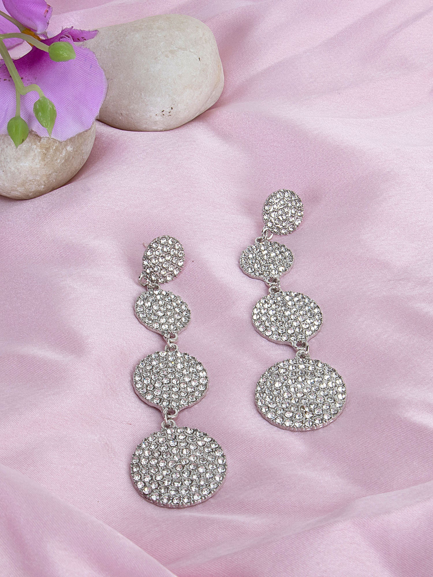 Shine bright all day long with our diamond drop earrings. Created in silver-plated metal, this pair of studded diamonds drop earrings will complete your look.