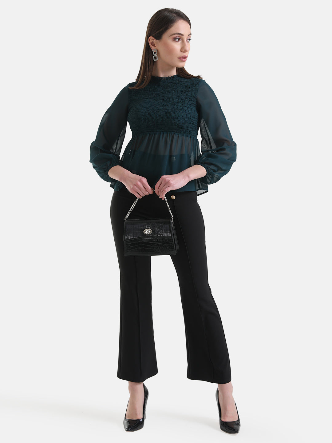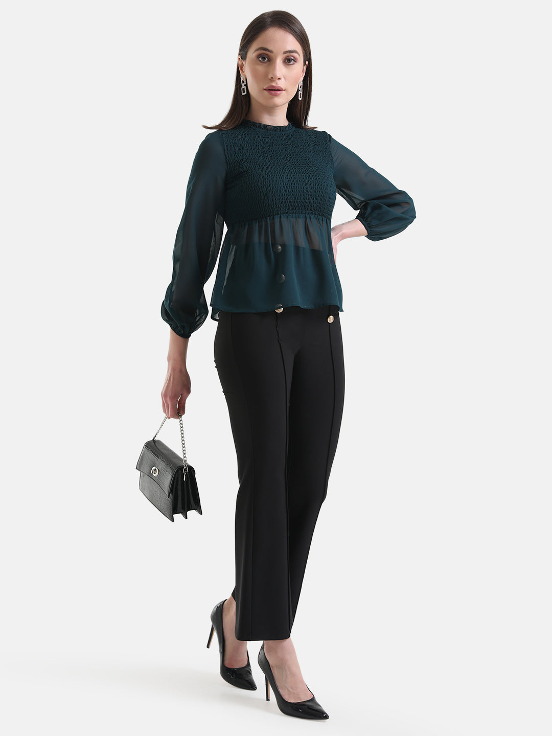 Smocked Top Featuring Ruffle at Neck With Full Sleeve