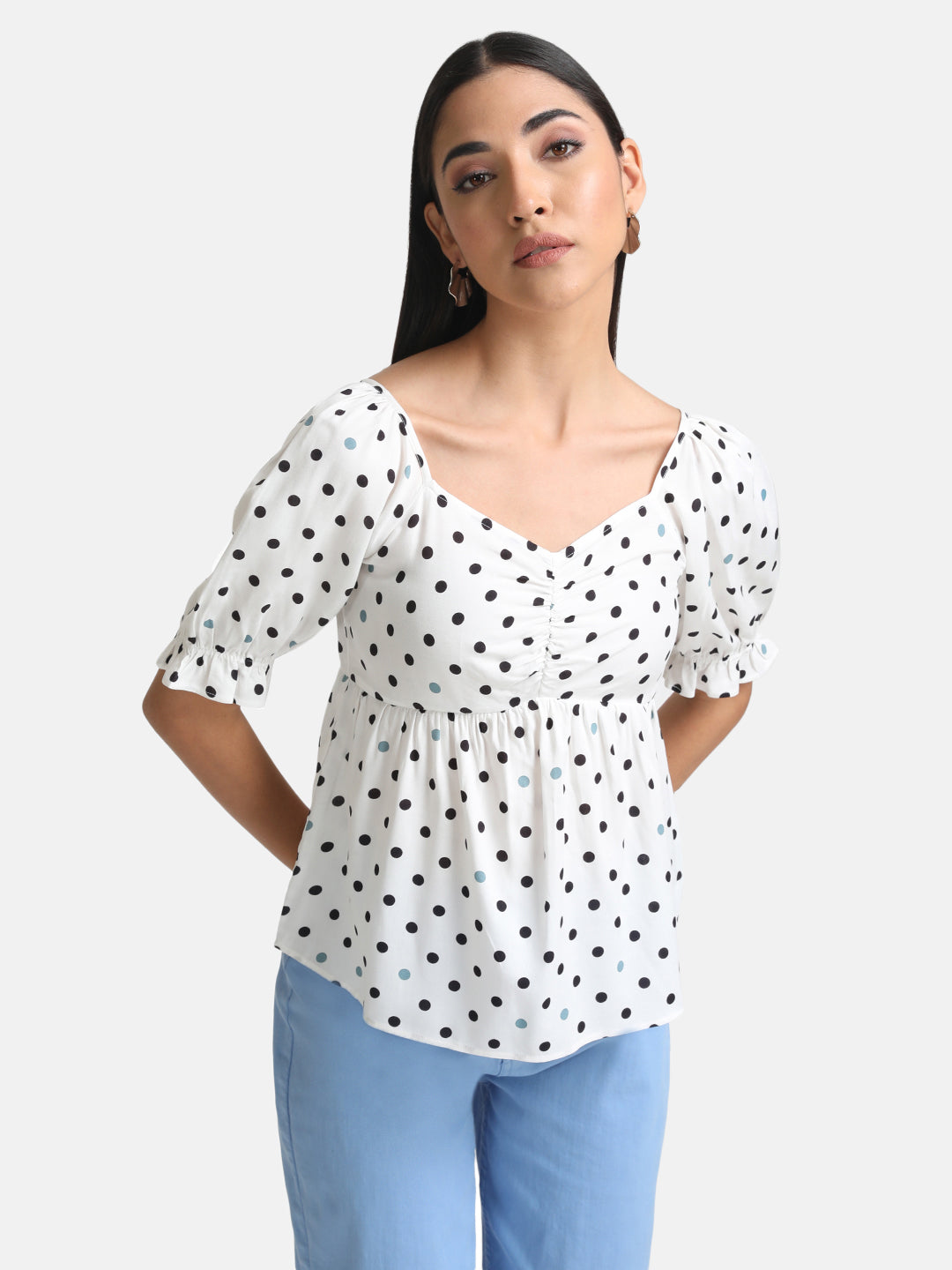 Sweetheart Neck Top Featuring Elastic at Waist and Sleeve.