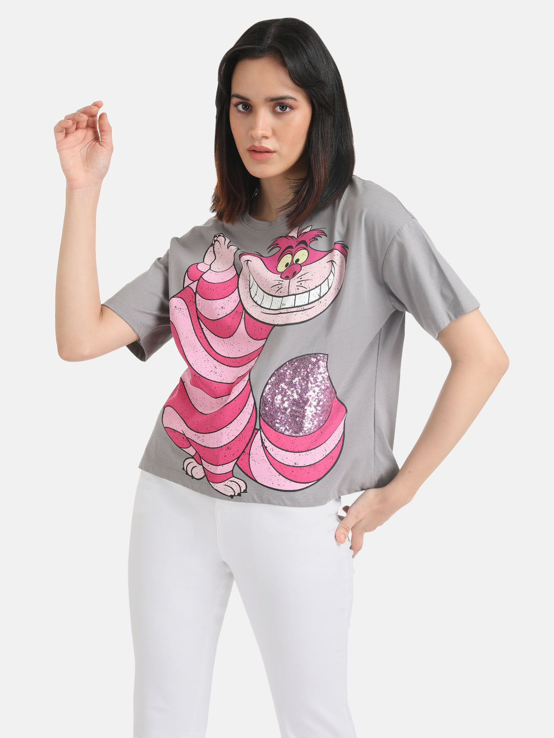 Cheshire Cat Disney Printed T-Shirt With Sequin Work