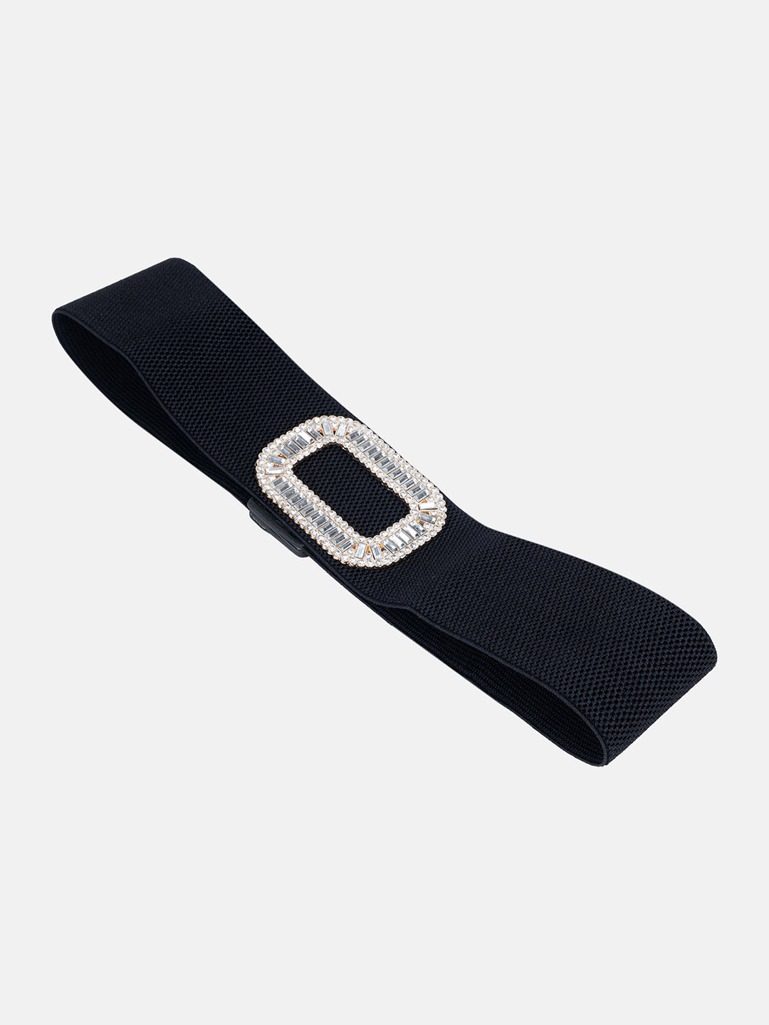 Get Ready To Buckle Up Your Style With Stone Embeslished Stretch Buckle Belt . It Comes With Charming Rhinestone Buckle Belt . Its Designed Gold Metal Buckle On Basic Everyday Belt That Makes It Easy & Comfortable And Upgrades Your Look. It Is A Must-Have Accessory For Levelling Up Any Outfit And Is The Perfect Way To Express Your Style.