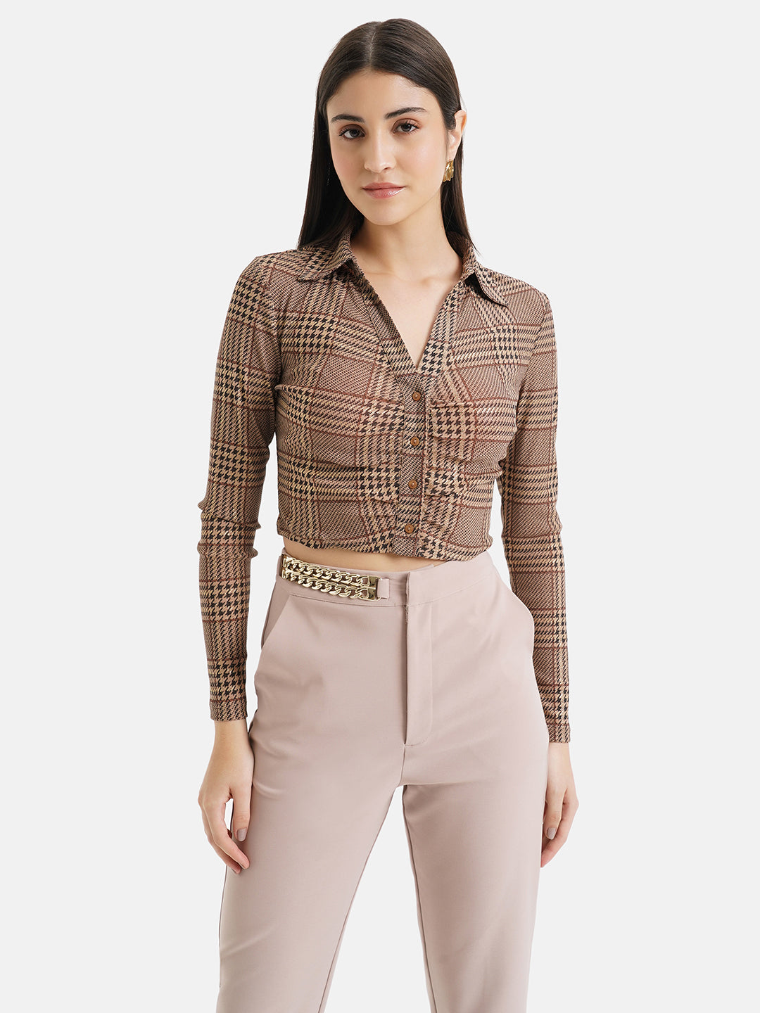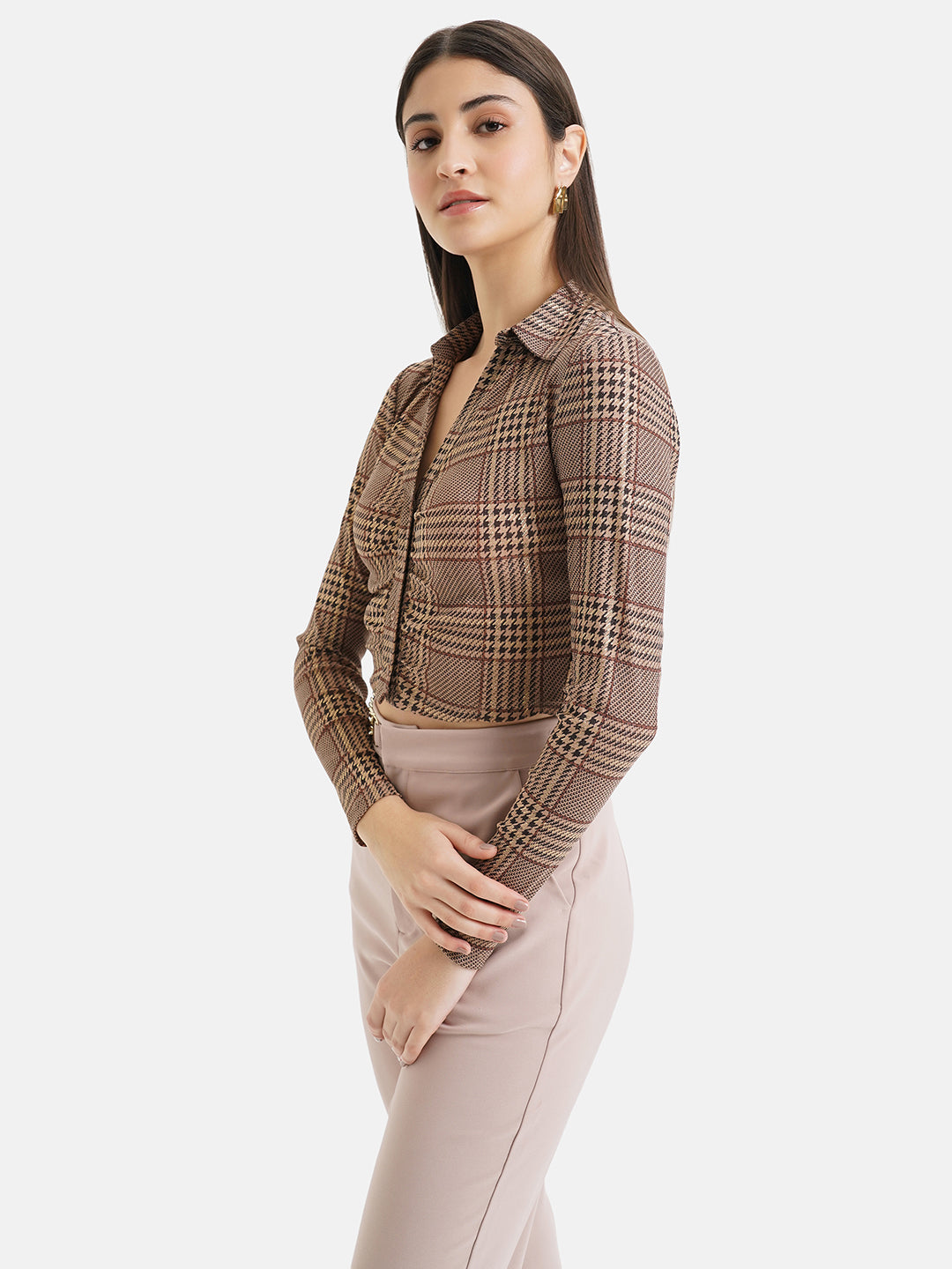Cropped Top With Ruching At Placket. Pair It With High-Waisted Pants And Heels For A Classy Yet Comfy Look At An After Office Party.