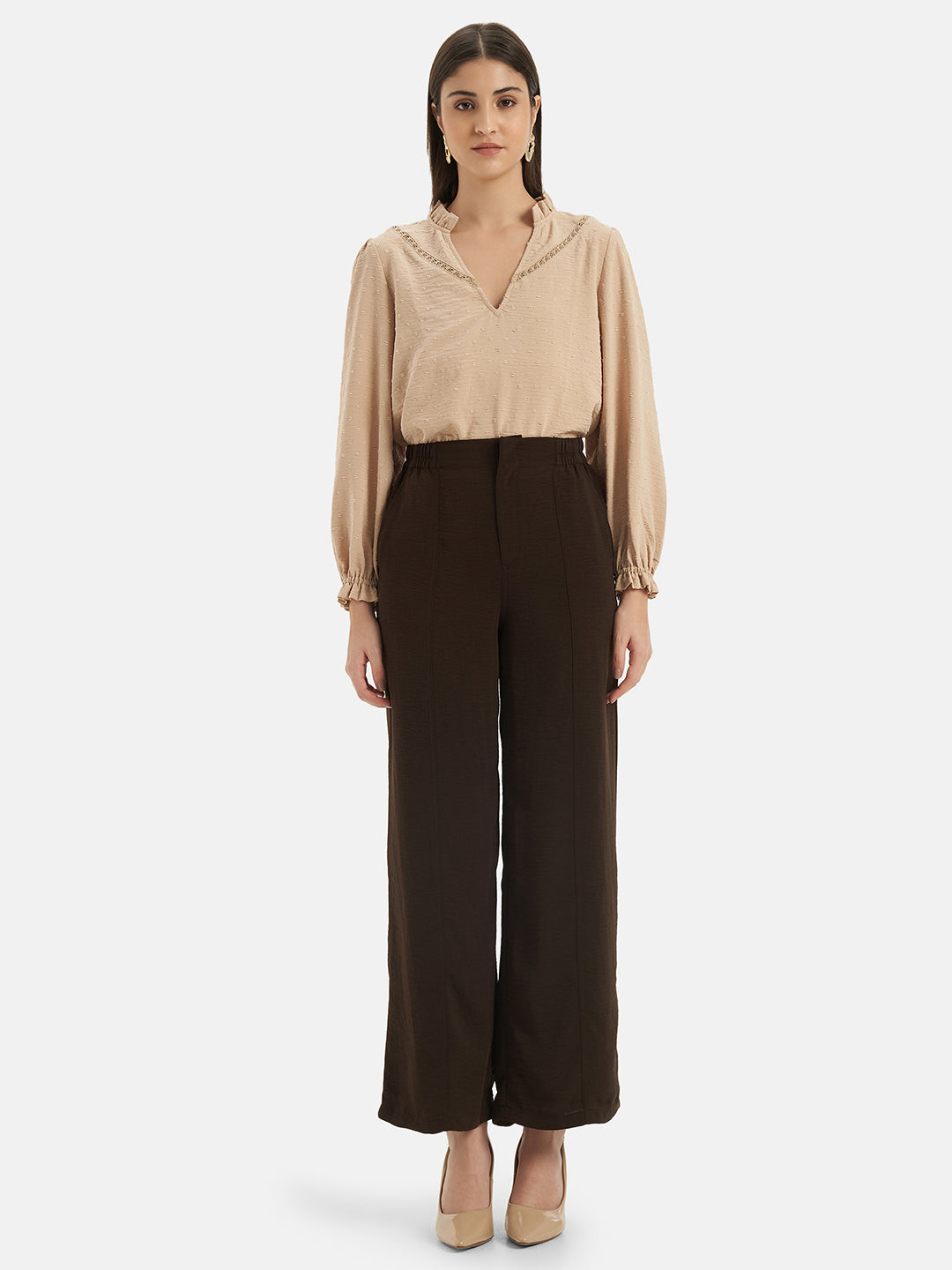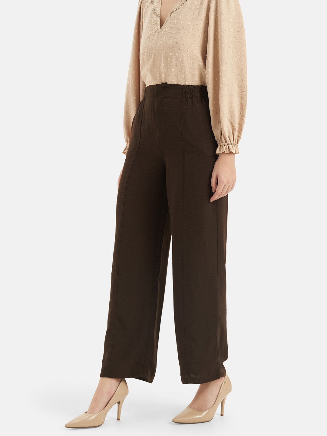 Wide Legged Pants With Elasticated Waist. Pair It With Tucked-In Shirt, Pointed Heels And A Handbag For A Comfy Formal Look.
