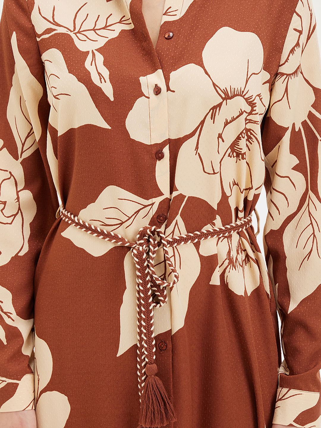 Floral Printed Shirt Dress With Cord Belt. Pair It With Pointed Heels For An Easy Breezy Work Look.